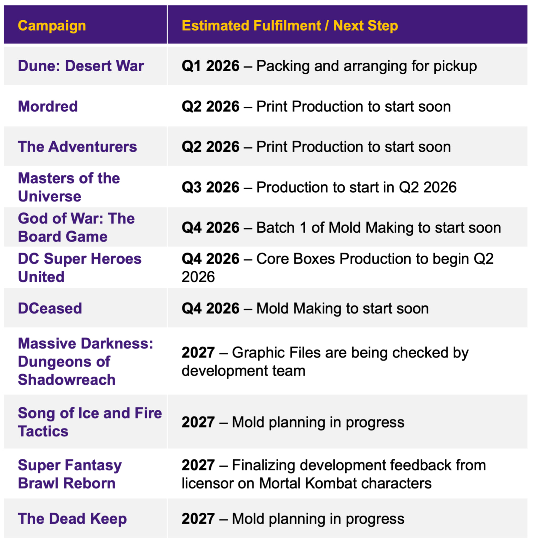 nouvelle page de CMON qui veut faire un effort de com’ et annonce qu’ils mettront cette page de suivi des étapes/dates de leurs campagnes/pré-commandes à jour « régulièrement » avec les dernières infos. https://www.cmon.com/project-status/#pre-order