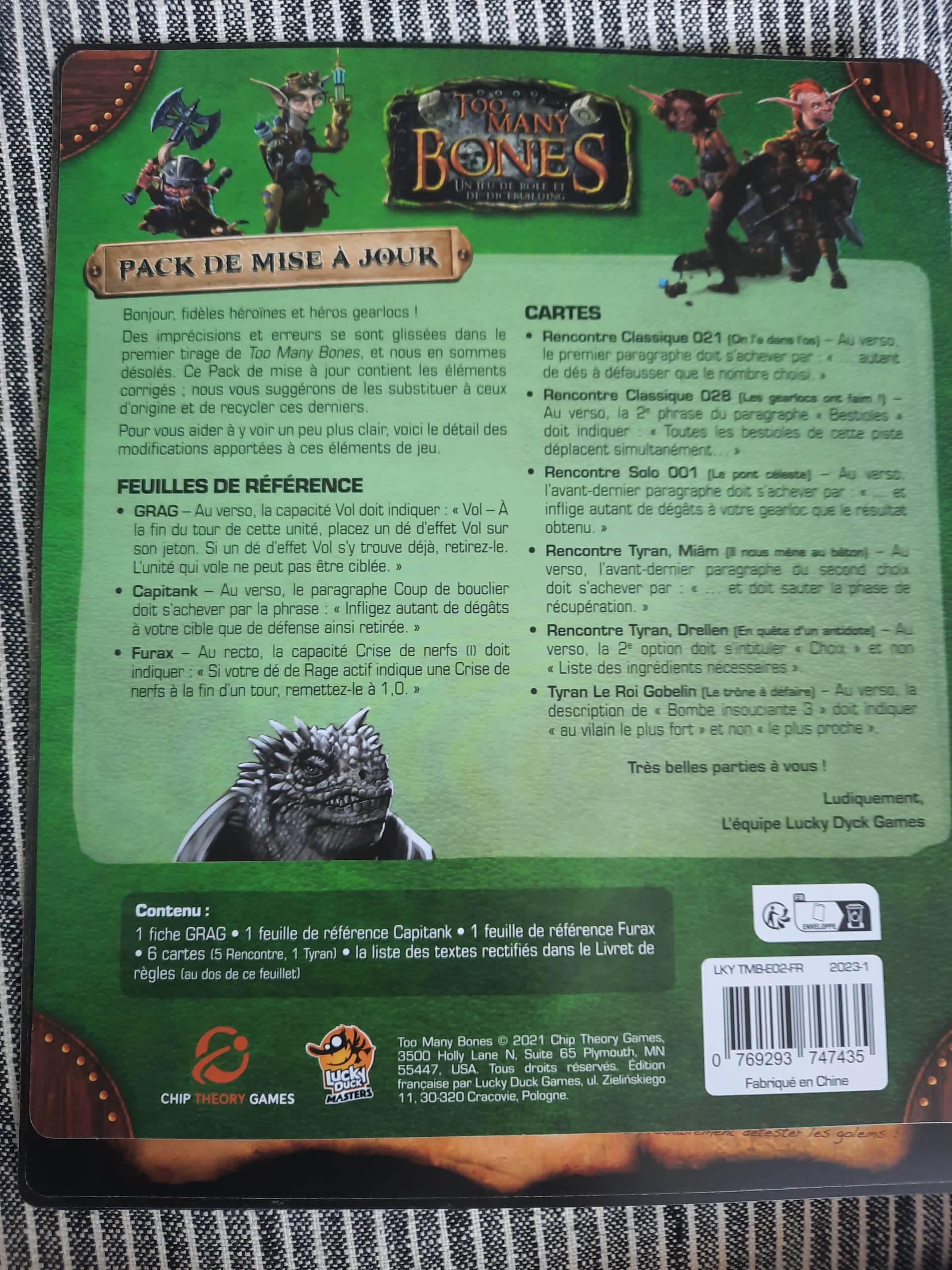 J’ai fait une demande de SAV en décembre 2023, en précisant que que je voulais le update pack (comme précisé sur la page de campagne sur Game On Tabletop). Et je n’ai reçu que la fiche du GRAG.