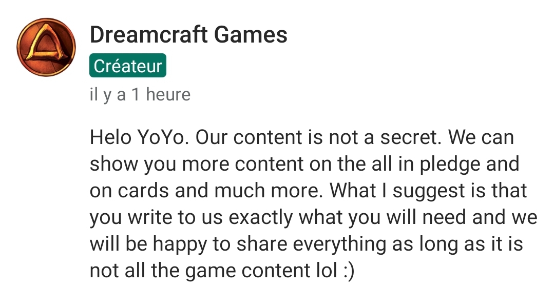 En gros, je reste sur mon avis qu’ils ont toujours que la maquette du KS et qu’ils n’ont progressé sur rien d’autres…