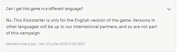 On peut toujours avoir confiance en la Loi de Vasel et se dire que s’il est bon, il sera réimprimé (que ce soit sur un second KS ou en retail). Par contre je ne parierais pas sur une trad