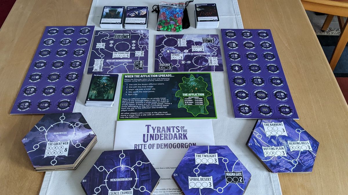 La partie devis pour les tuiles suis son cours mais je peux d’ores et déjà annoncé que le plateau modulaire est hors scope. On parlerait facilement de 50-60e juste pour lui, c’est trop cher et ca n’intéresse pas tout le monde de toute facon. Je focalise donc sur une planche unique qui comprendrait le plateau pour l’extension Scourge of Juiblex + les marqueurs de controles de sites (extension Sites of Power). J’espère pouvoir avoir un truc sous les 10e pour ca.