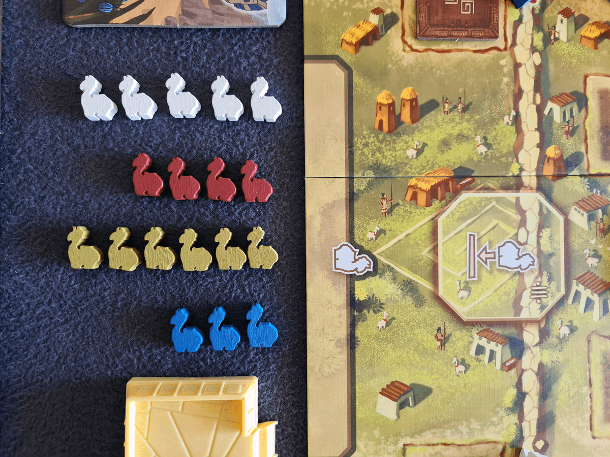 vu l’illustration sur la boite, ça reste encore indéfini, à mes yeux. Le meeple ressemble plus à un lama que le truc dessiné sur la boîte, que je situe entre le mouton et le dragon-chien de l’Histoire sans fin (mais avec une coupe stylée quand même).