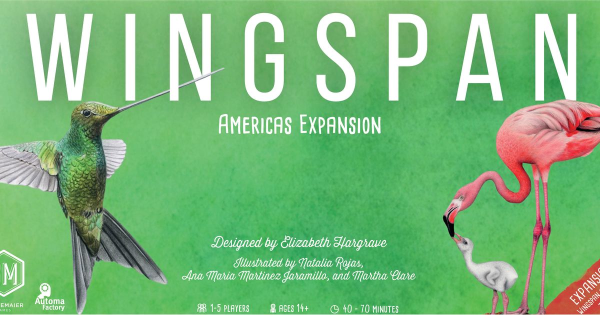 Les composants de Wingspan Americas comprennent 111 nouvelles cartes oiseaux ainsi que 40 cartes colibris (et leurs plateaux et tapis associés), 8 nouvelles cartes objectif, 5 tuiles objectif double face et un mode solo Automa.