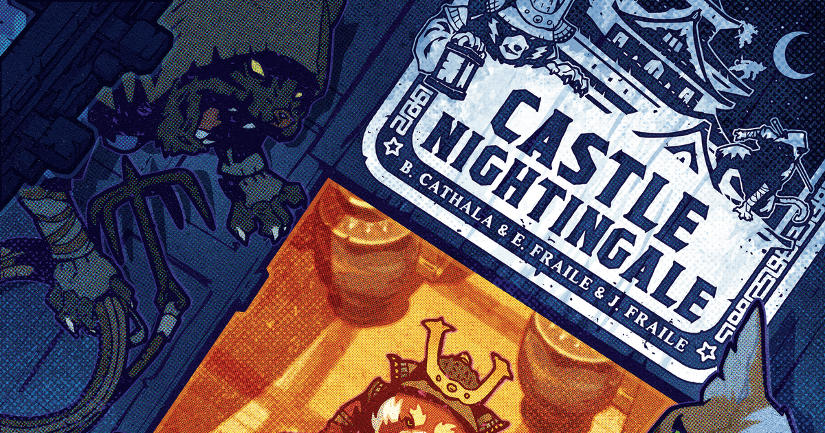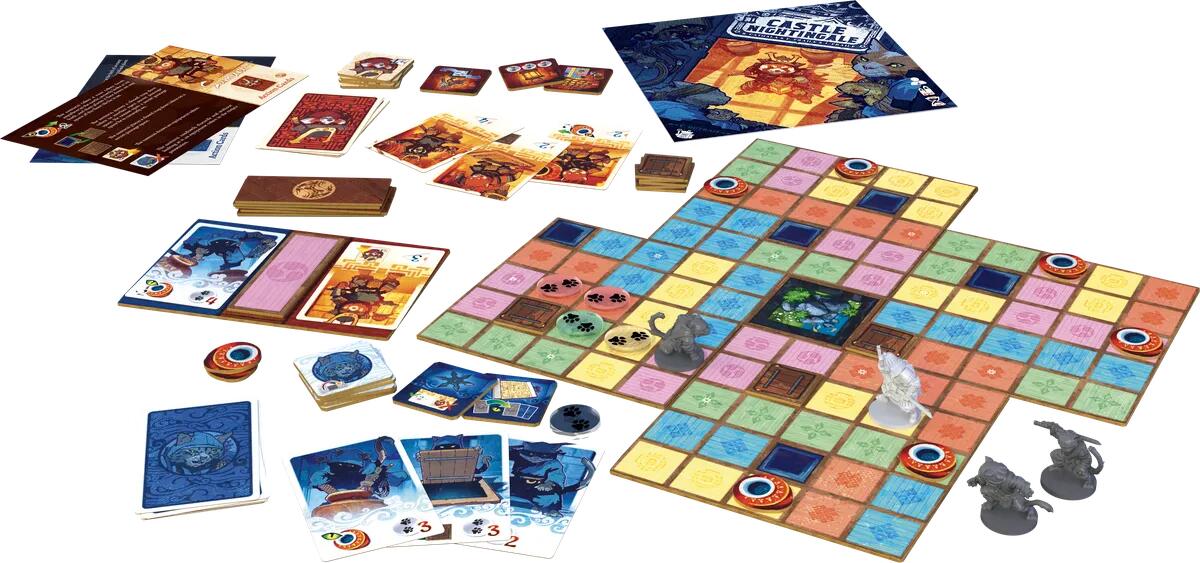 Deux joueurs s’affrontent dans Castle Nightingale, le joueur ninja essayant de voler cinq reliques avant que le joueur samouraï ne capture les trois voleurs ninjas. Le château est composé d’un jardin inaccessible entouré de quatre planches à double face, chacune montrant deux passages secrets et des zones de cinq couleurs différentes.