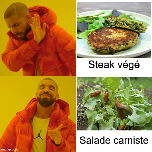 Et visiblement ça ne dérange personne que ça soit devenu quasiment impossible de trouver des restos qui proposent des salades sans viande dedans, alors qu’à la base la définition c’est littéralement « des feuilles crues »
