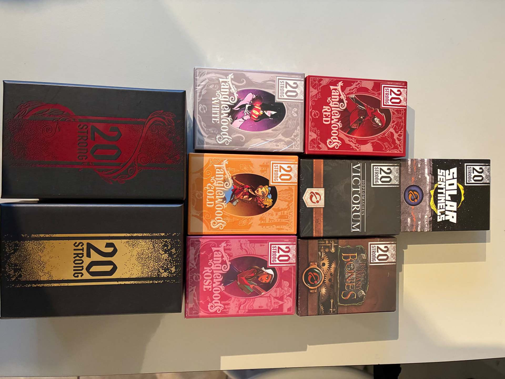 First Martians VF, en excellent état, avec l’Almanach et les 4 scénarios de l’IG faite par Nyva. 10 € Bites et son extension Double Bites qui double le nombre de tuiles. Règles en VF imprimées en laser sur papier glacé au format original. 25€ La Quête du bonheur VF, avec KS promos 1, 2 et 3, extensions Communautés et Thug Life, insert et sleeves Paladin. Un coin de la boîte a rompu. 90 € Oath VF, avec correctifs. Composants deluxe officiels, Journal VO (quelques pages ont été utilisées), meeples Bandits 3D, entièrement sleevé, 80 € Shinkansen2 € Oui, Seigneur des Ténèbres 2 € Fallen Angels VF, sous cello 2 € 13 couronnes 2 € Roméo & Juliette 5 € Symbiose et carte goodie Triton 10 €