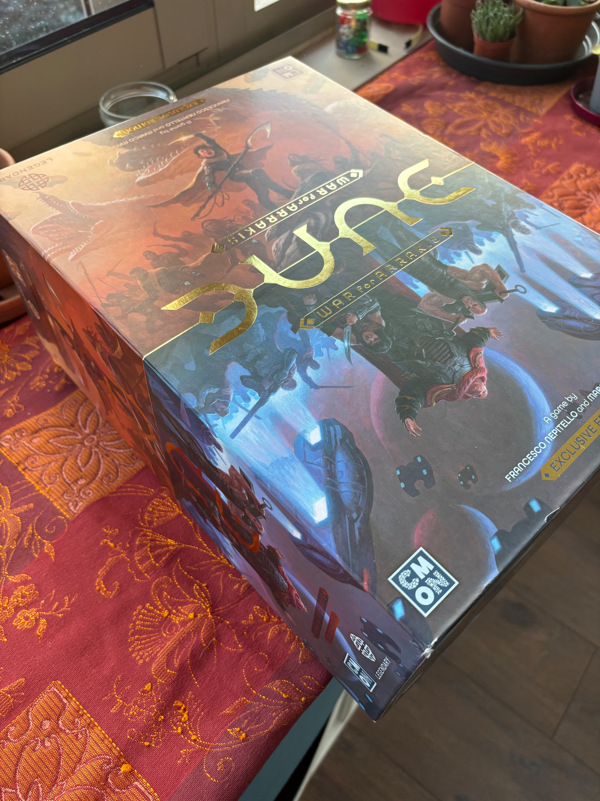 Hello, en répondant à une recherche, cela m’incite finalement à le mettre en vente… Je vends donc Dune War Of Arakis version KS, avec les extensions Space Guild et Smugglers (sous cello).