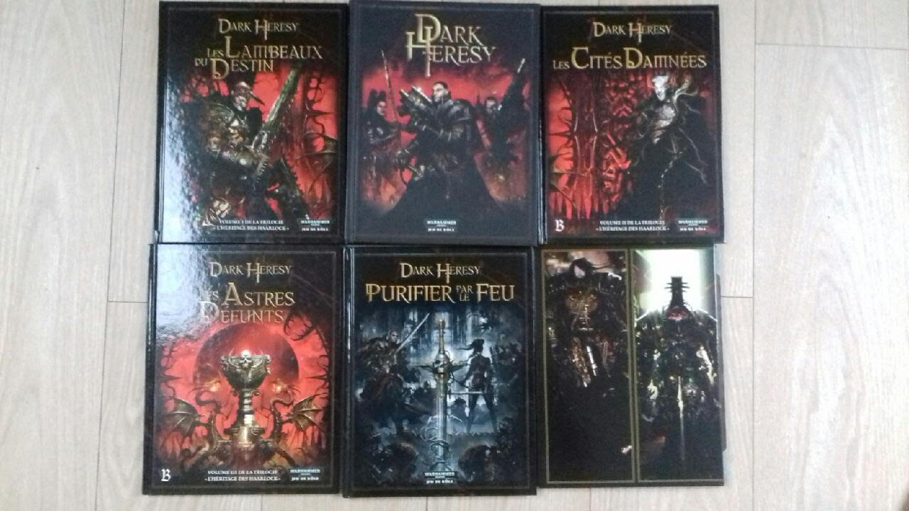 Lot JDR Dark Heresy avec le livre de base, l’écran du MJ, les campagnes La Trilogie des Harrlocks et Purifier par le feu : 100 €
