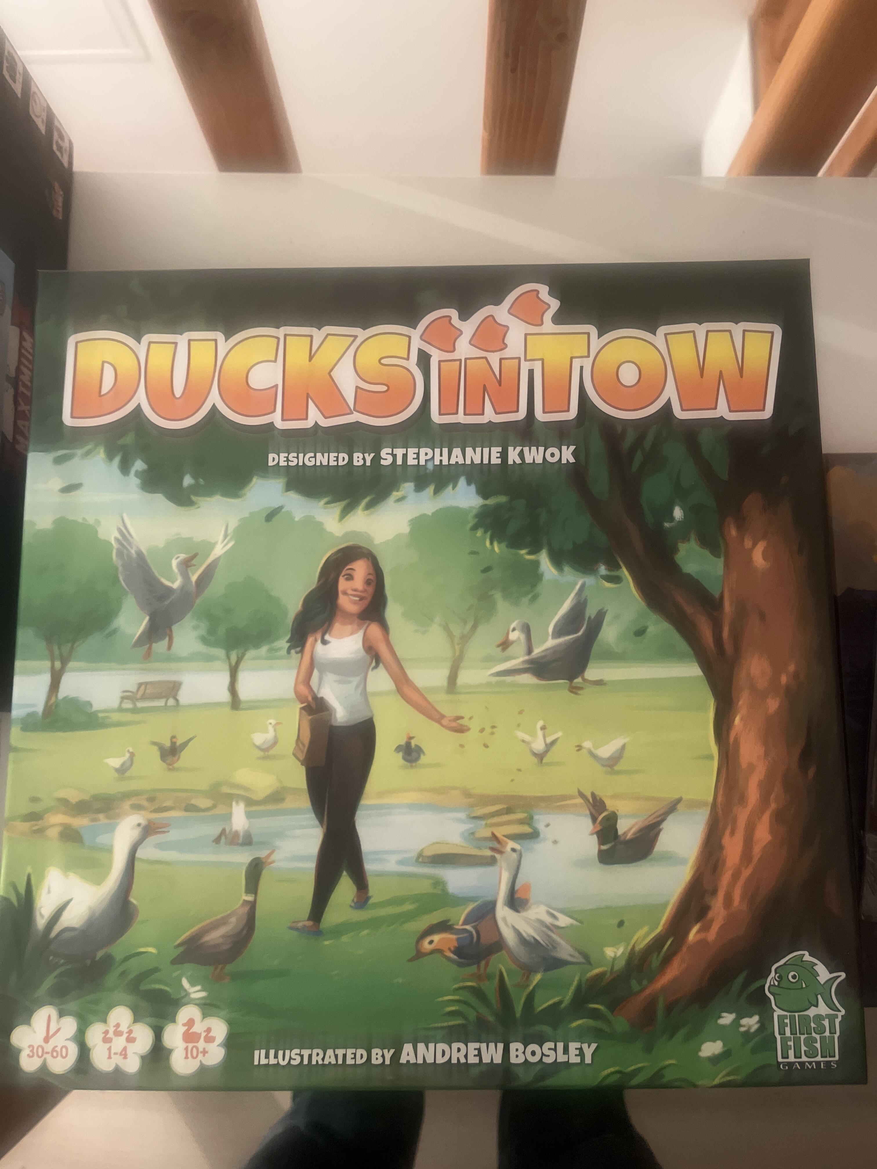 Ducks in tow 70€ avec ses deux extensions. Jeu de stratégie avec des petits meeples canards en bois trop mignon, il faut récupérer des canard d’une certaine couleur pour accomplir des objectifs à certains endroit et ne pas se faire piquer les canards par d’autres