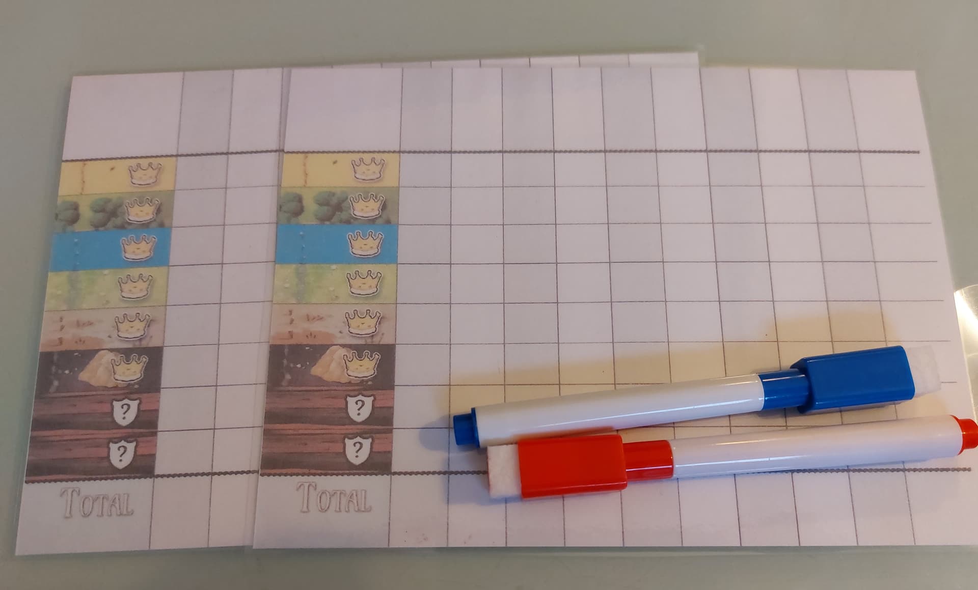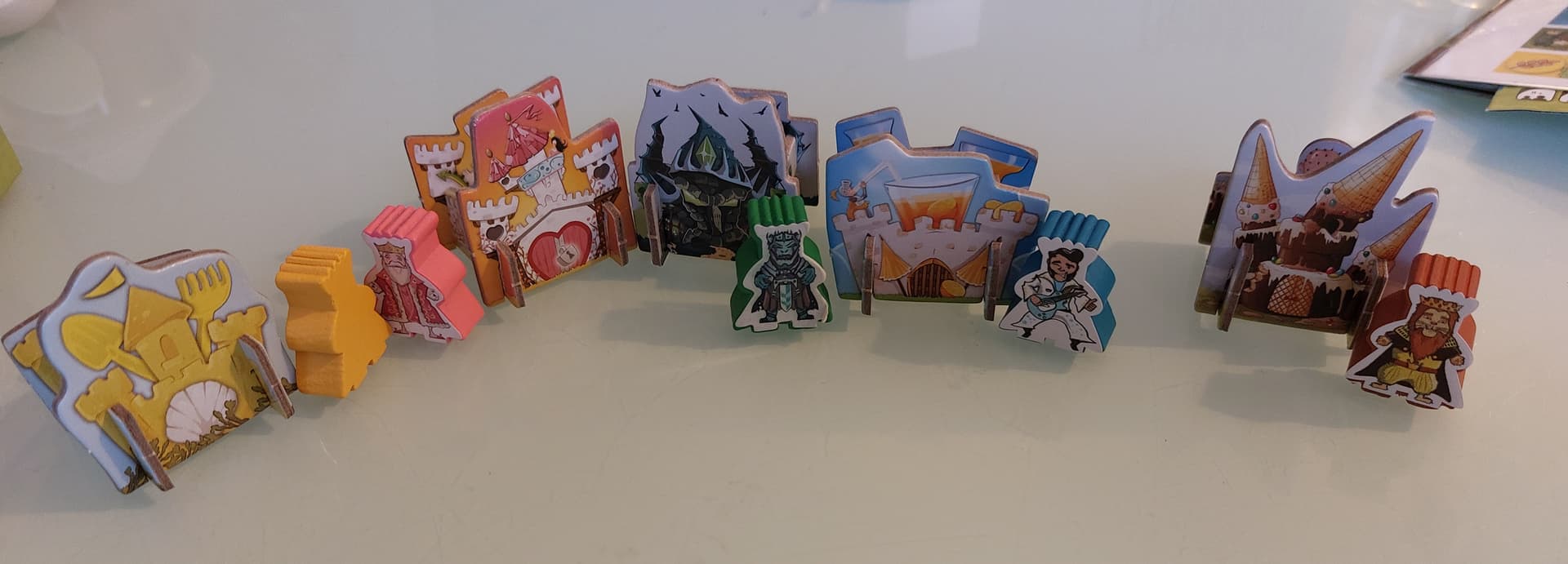 Pions 3D homemade + éléments de jeu collés sur une surface dure