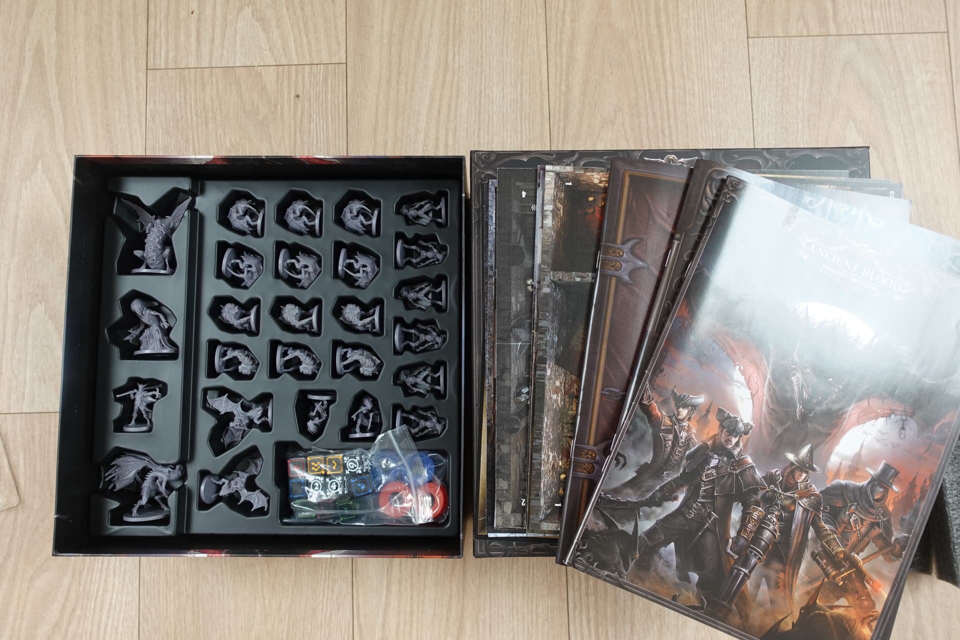 Hello, je mets en vente mon pledge Ancient Blood The Order of Vampire Hunter VF fraîchement arrivé il y a 2-3 semaines.