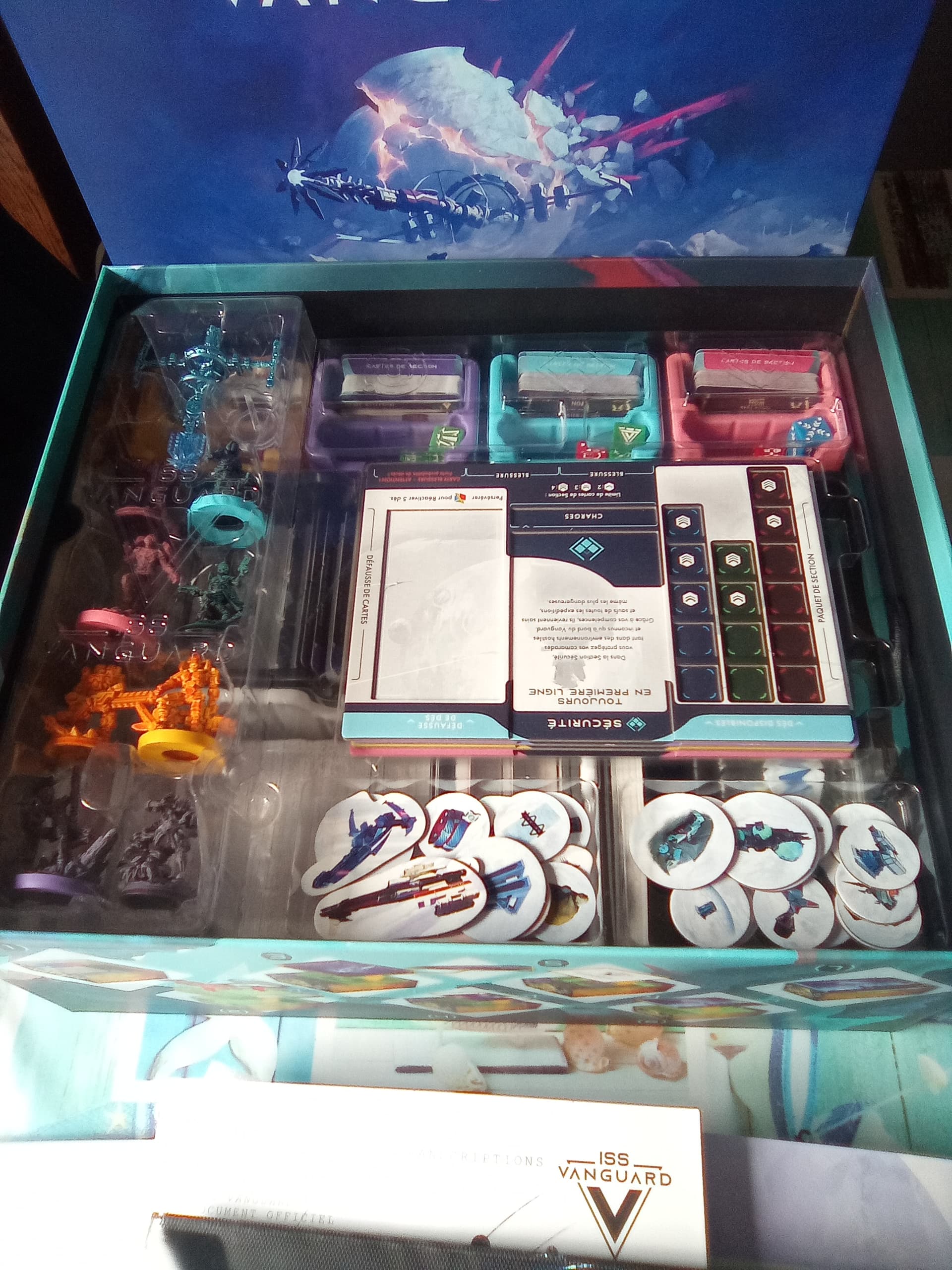 Faute de place et ayant succombé à une marveulitte championnite aigue, je mets en vente mon pledge gamefound ISS VANGUARD SUNDROP standees, le tout en FR. (indissociable!)