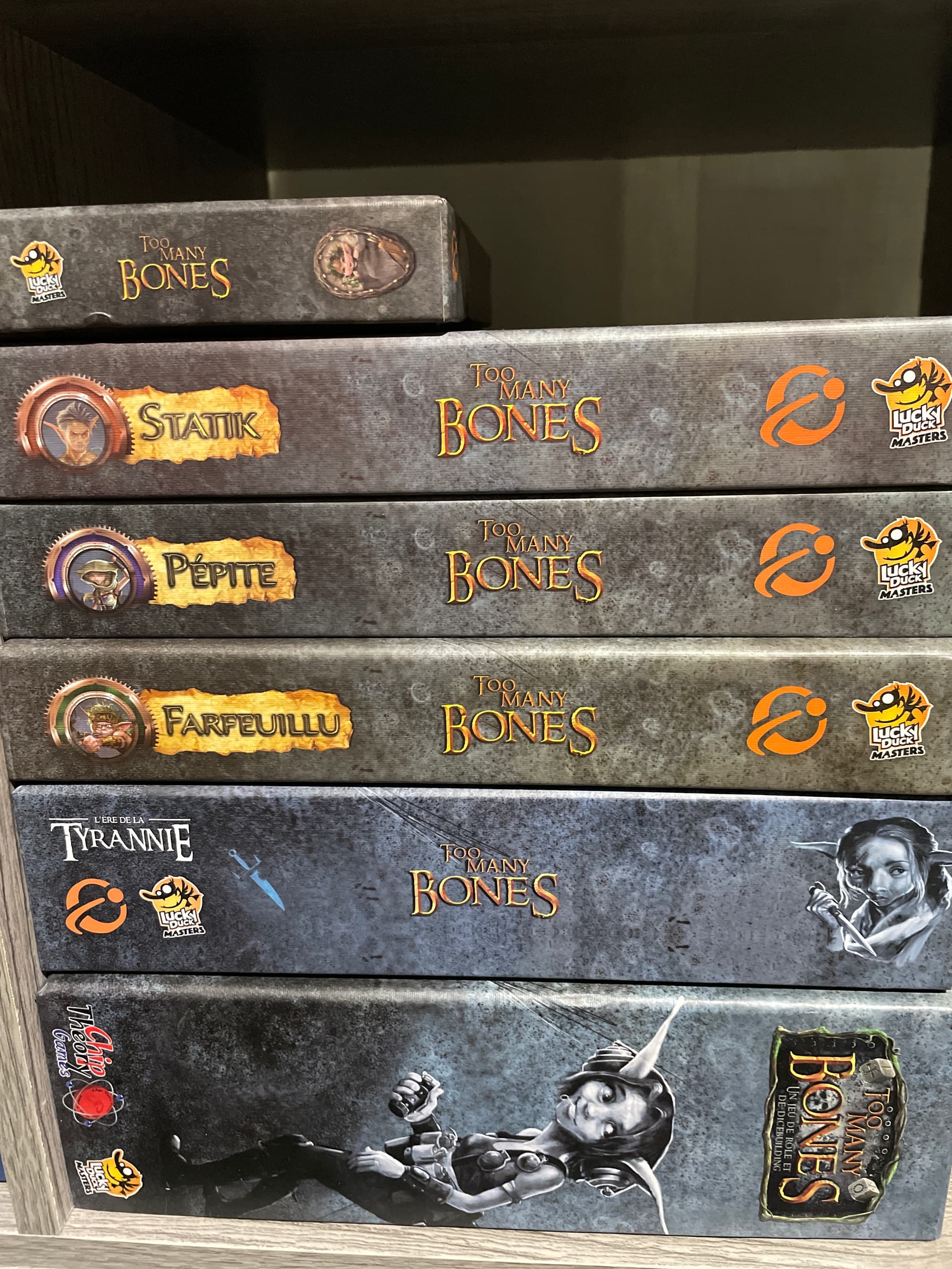 Boite de base, les 6 extensions de campagne, l’addon personnages.