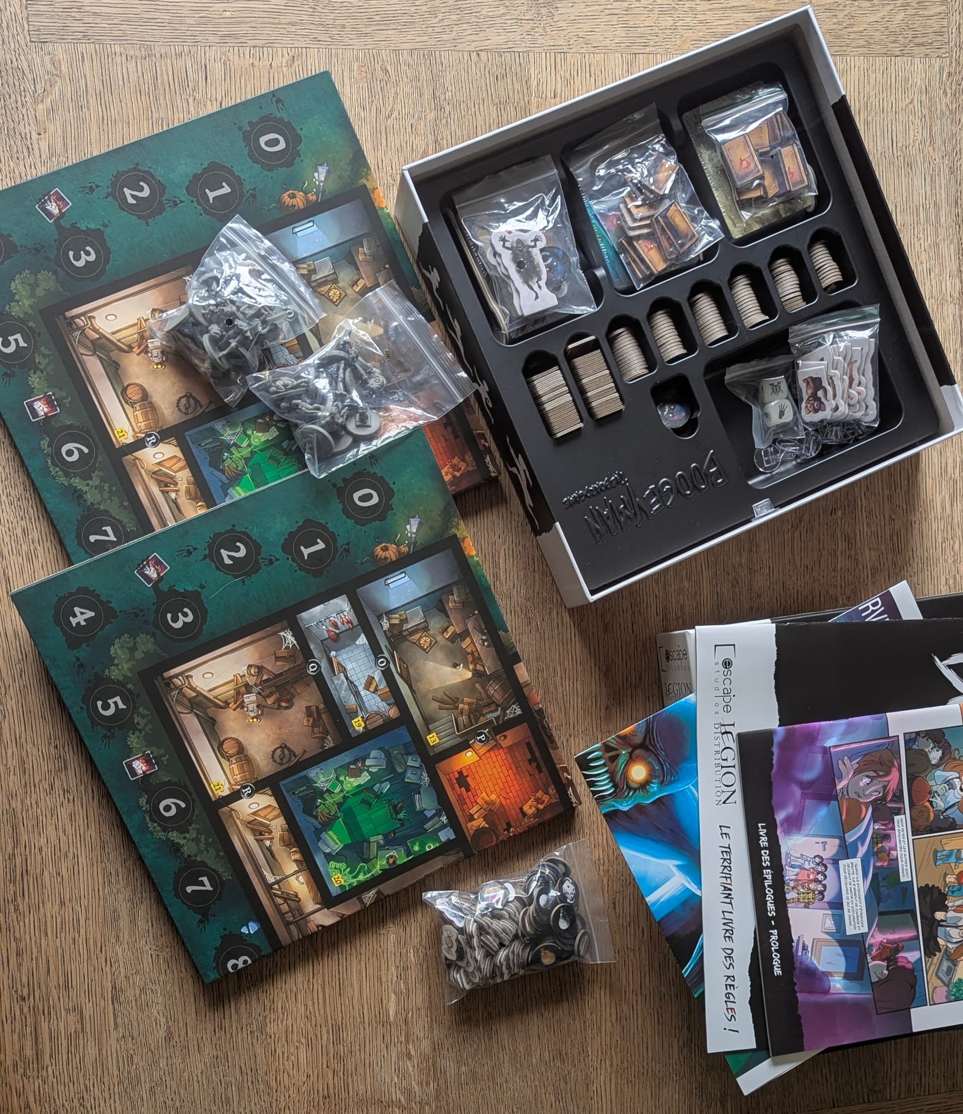 Ayant reçu à la base la version allemande, le pack est vendu avec tous les jetons, figurines et plateaux en double.