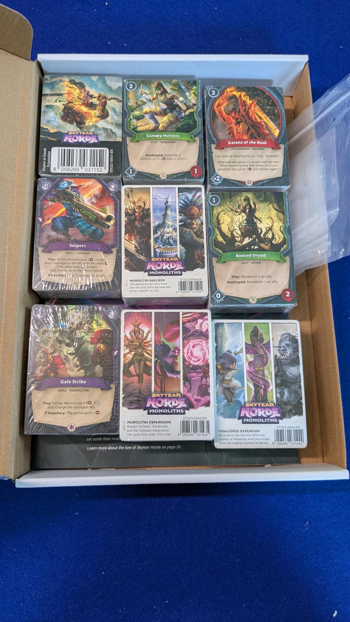 Tout a été ouvert, les emballages des sets et du coffrets ne sont plus forcément titpop (au niveau de l’ouverture notamment) mais les cartes sont en très bon état, on a joué juste 6 parties et uniquement du 1er chapitre.