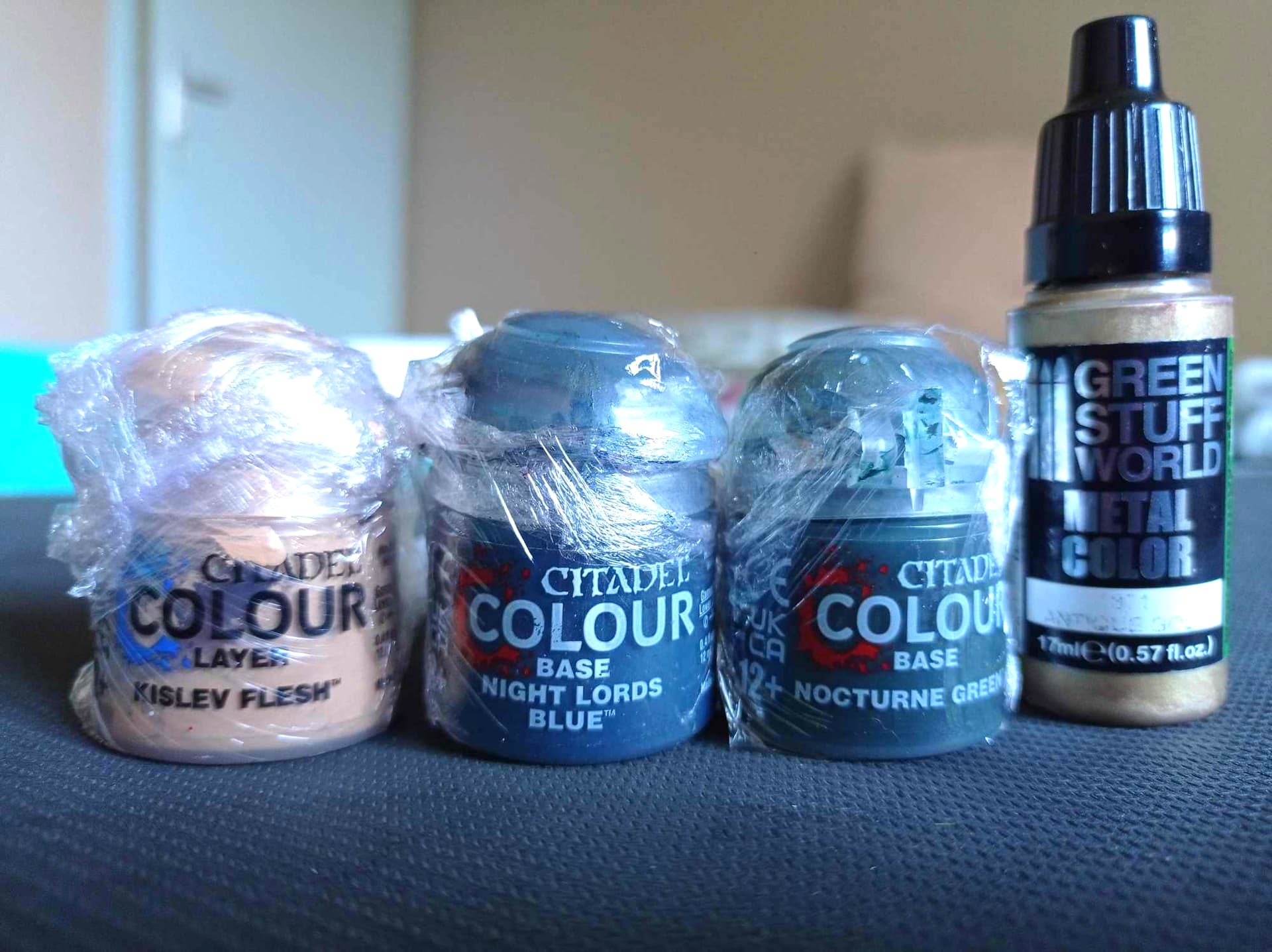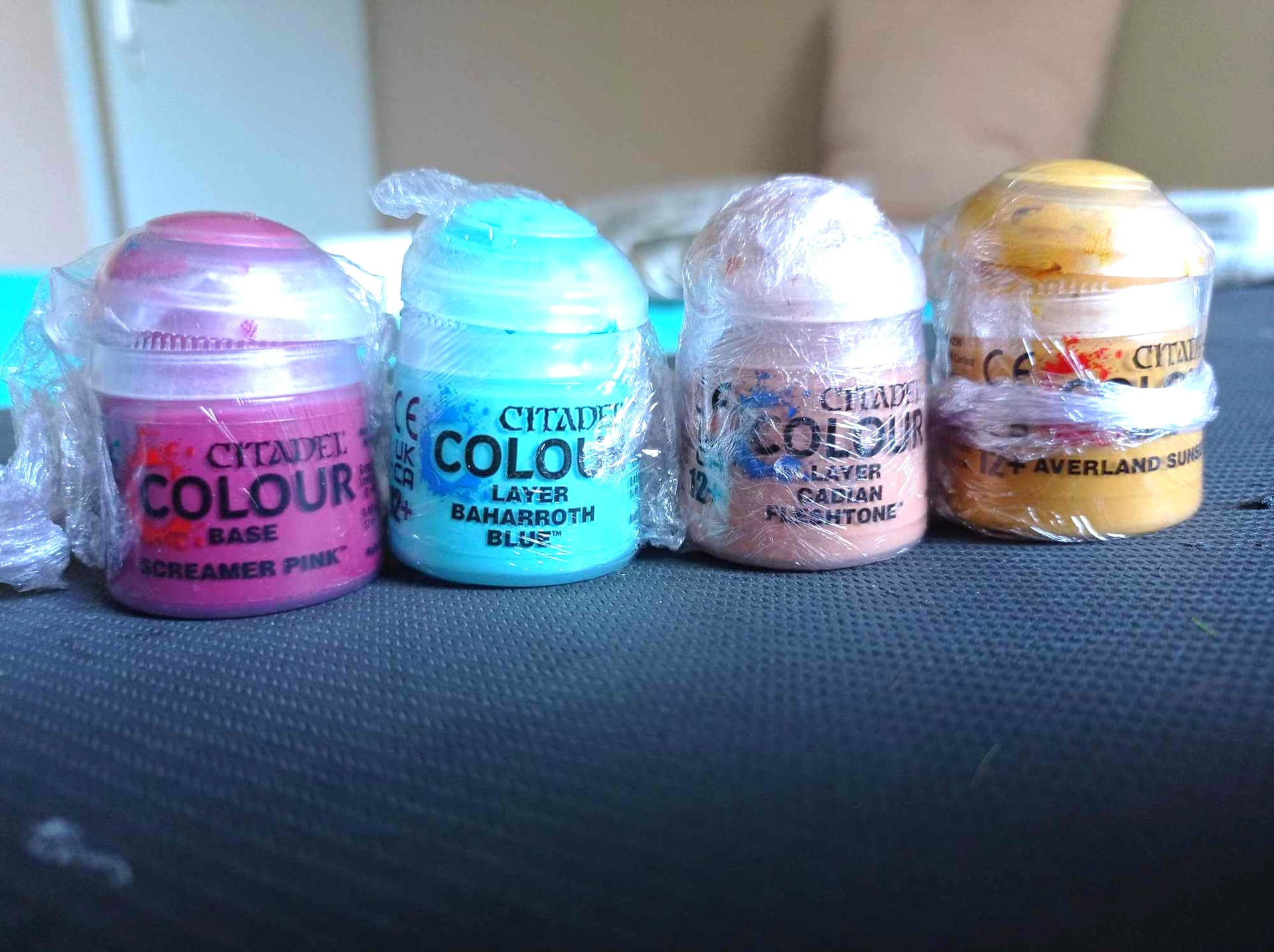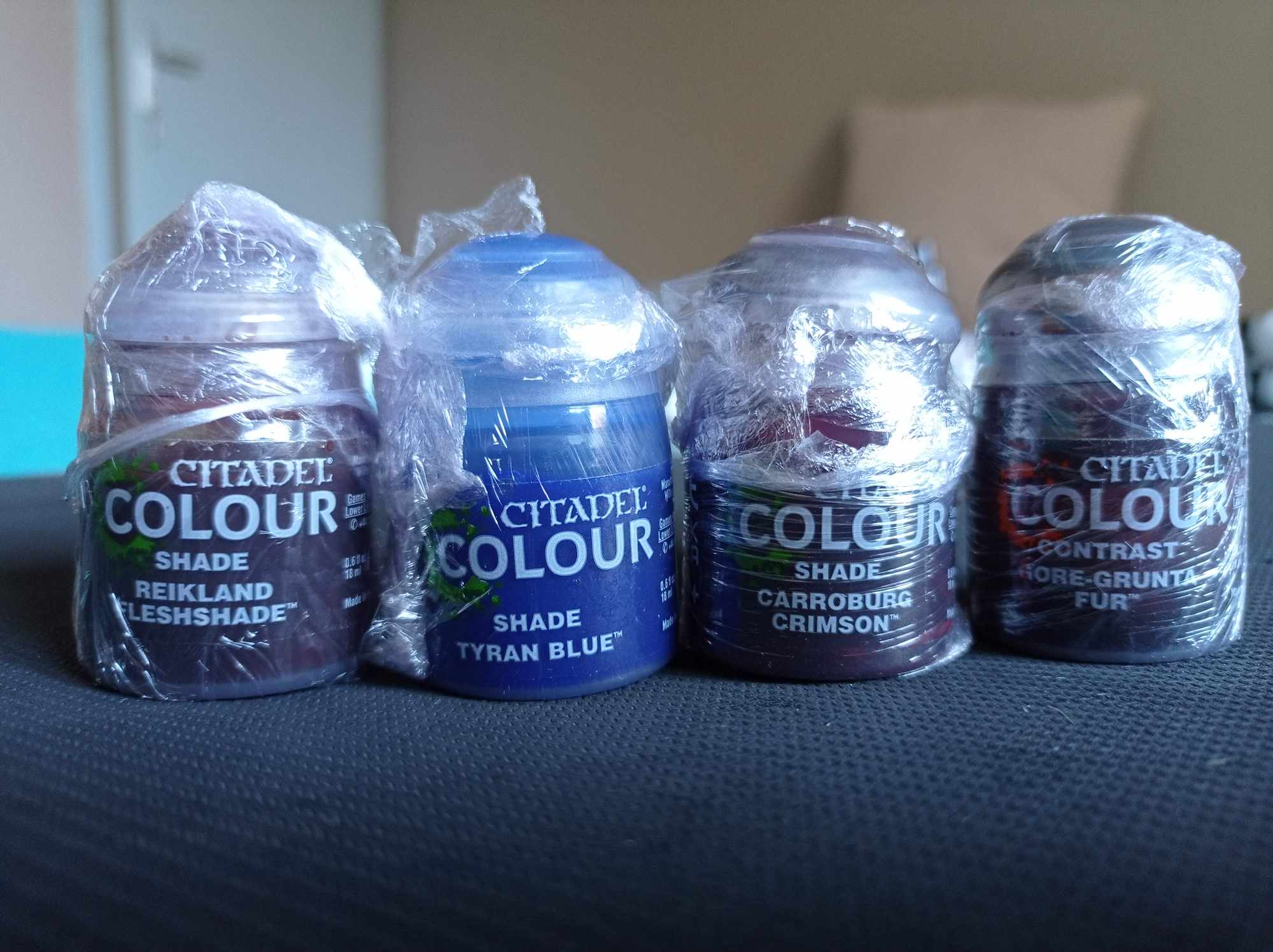 Pour les pots Shade, Peinture, Contrast, les pots sont majoritairement remplis au 2/3. Certains un peu moins, d’autres un peu plus. Les 2 flacons Prince August c’est du Vernis Mat, neuf. Y’a des décalcomanies Age of Sigmar, des herbes, plantes pour le soclage…