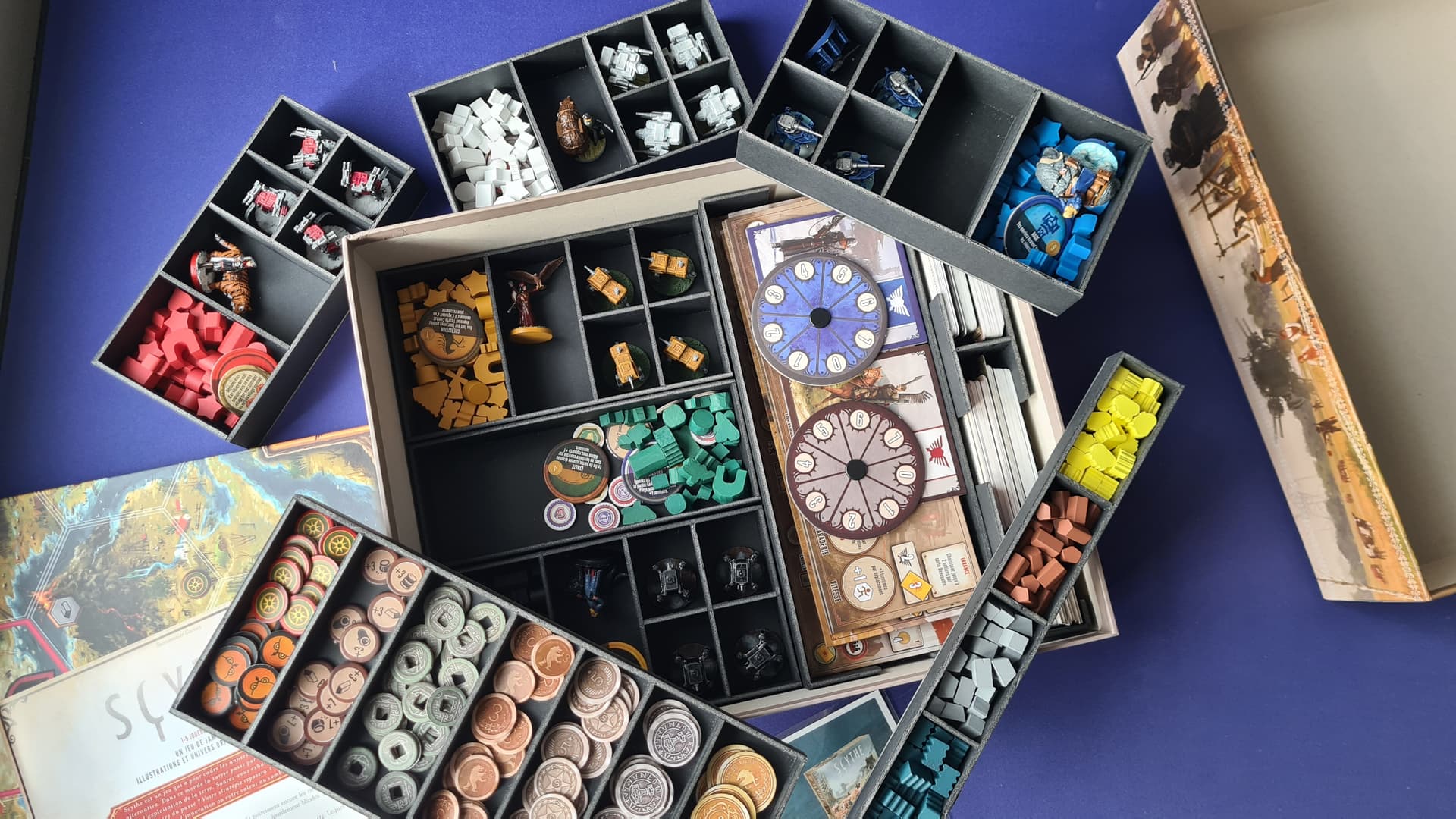 Je vends un lot « Scythe », jeu de base + « Le réveil de Fenris » + cartes promos + insert + addon fait maison et incluant les figurines peintes. Le tout pour 120 euros.