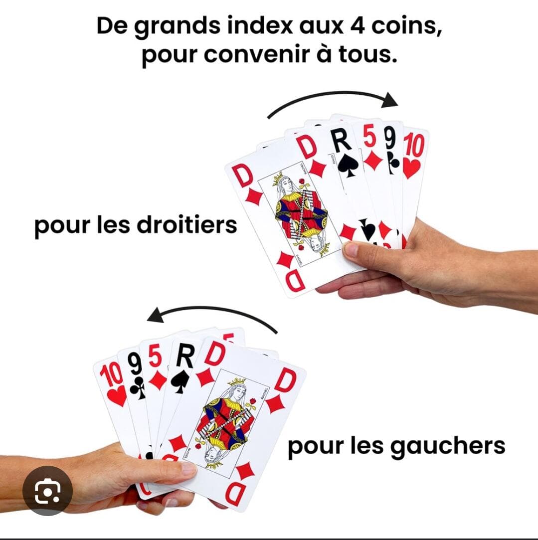 Normalement les valeurs des cartes devraient être présentes dans les 4 coins, pour qu’elles soient visibles qq soit le sens dans lequel tu tiens les cartes.
