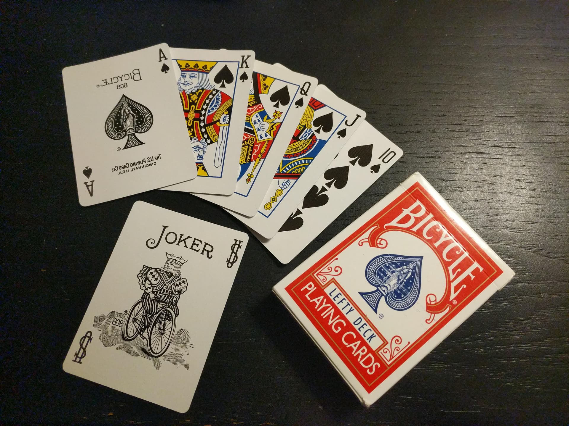 Par contre, je découvre que Bicycle fait des paquets pour gaucher. Je vais p’tet bien me venger de ces années d’oppression…