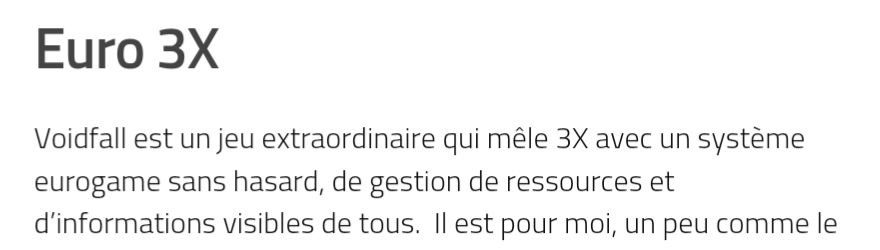 Photo de l’arrière de la boîte, et je cite (vu que ma photo est à l’envers ça facilite les choses !)ce qu’on peut y lire : dans voidfall,…, retrouvez la tension, la stratégie et le développement d’empires propres aux 4x.