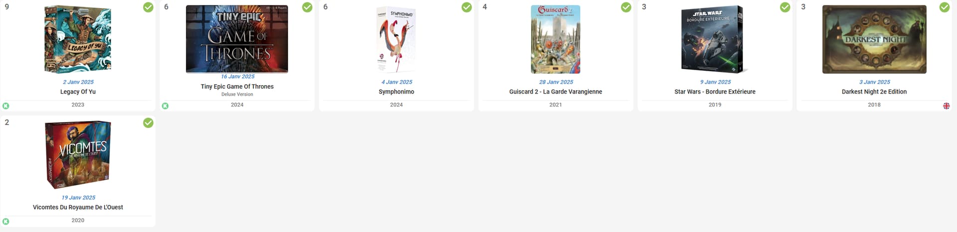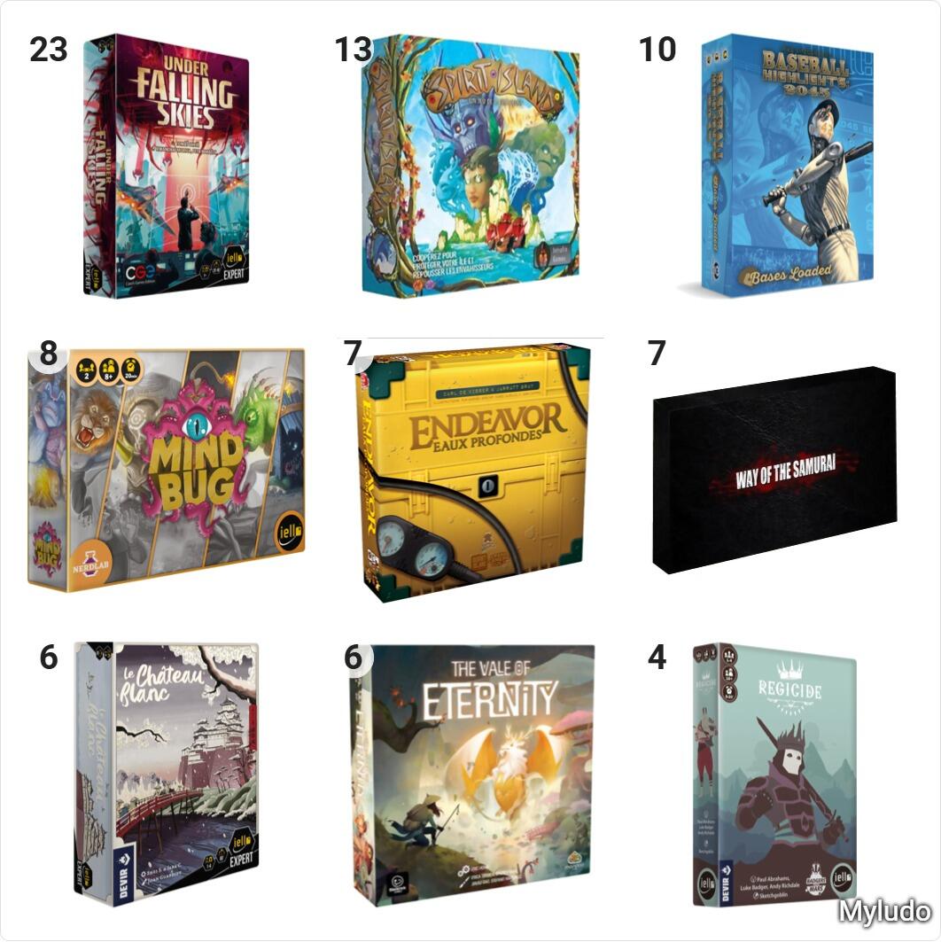 En ce début d’année, on ressort de vieux classiques solo (UFS et Spirit island). On joue direct aux cadeaux de Noel et anniversaire (Chateau blanc, Endeavor, extension de Vale of Eternity). Et on joue direct aux arrivées KS/Gamefound : Baseball Highlights ![]()
