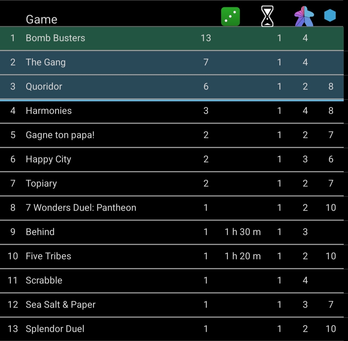 Le reste ce ne sont que des jeux rejoués avec plaisirs content d’y avoir joué à tous, notamment Spirit Island ca faisait longtemps mais c’est un vrai brule cerveau ! j’hésite à ma le prendre pour du solo.