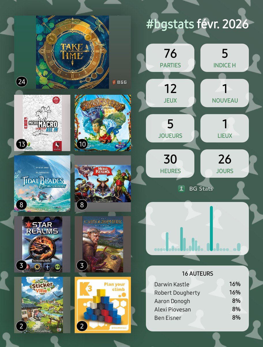 - 10 Spirit Island sur ce mois, y a des moments où je peux laisser le jeu sur la table et du coup j’enchaine ! Pas mal de parties avec le volcan, c’est assez fun à jouer, mais il faut quelqu’un qui assure à côté !