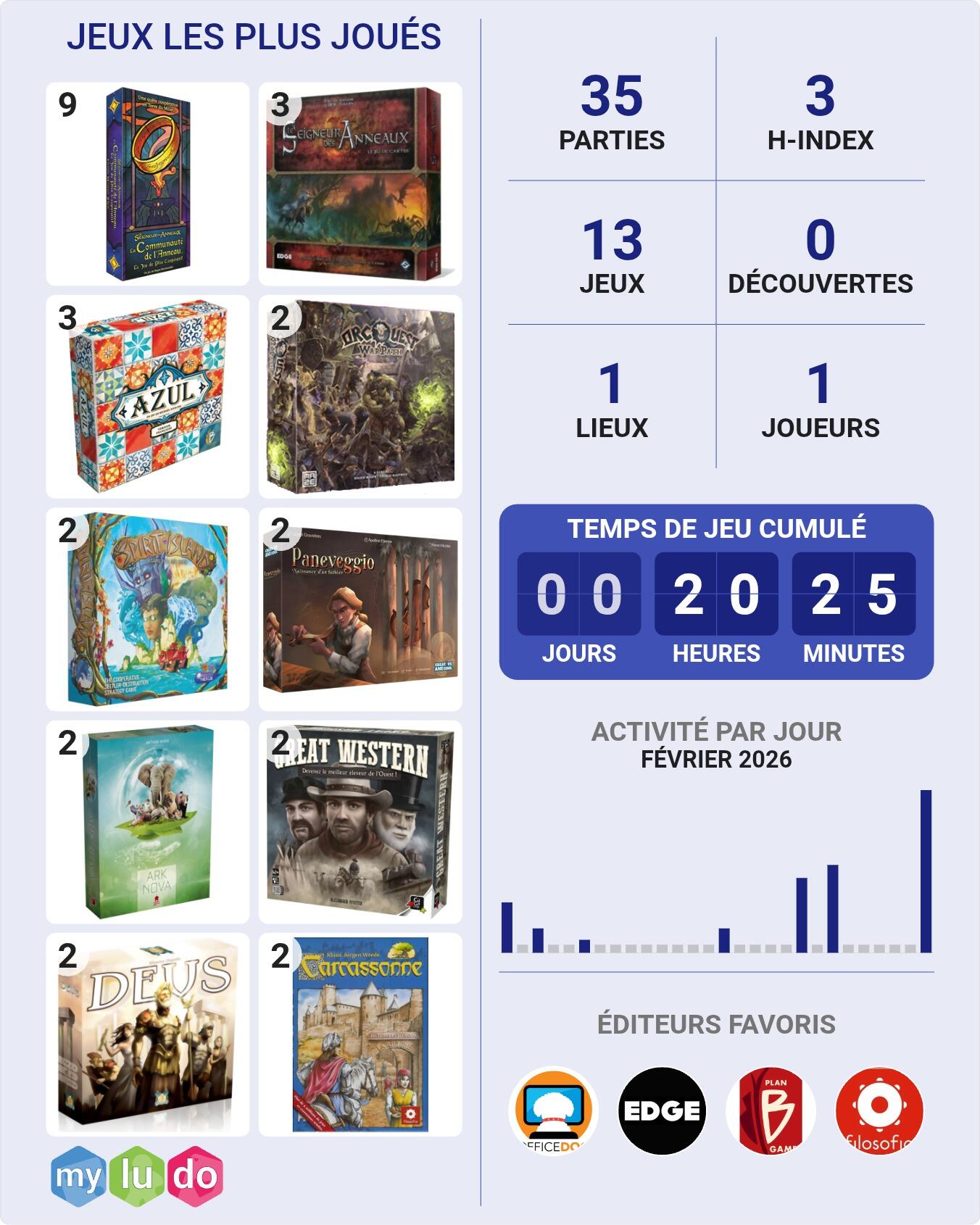 31 parties mais beaucoup de petit jeu (d’ailleurs je n’ai pas l’impression d’avoir beaucoup joué).