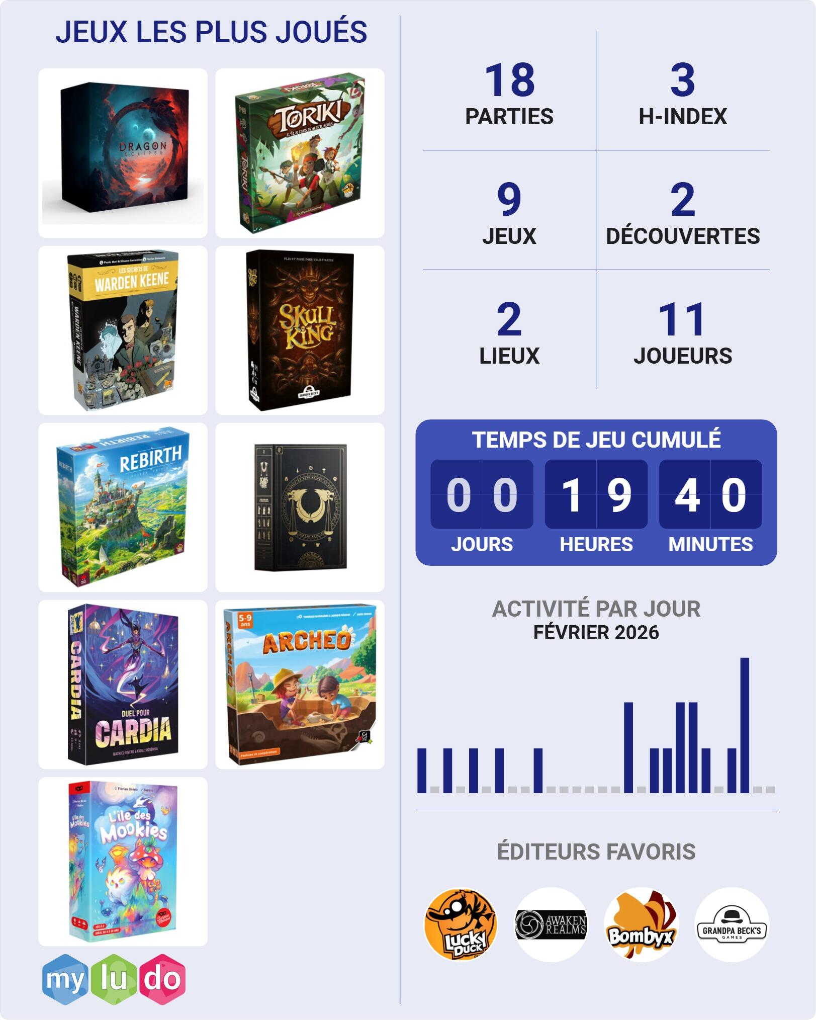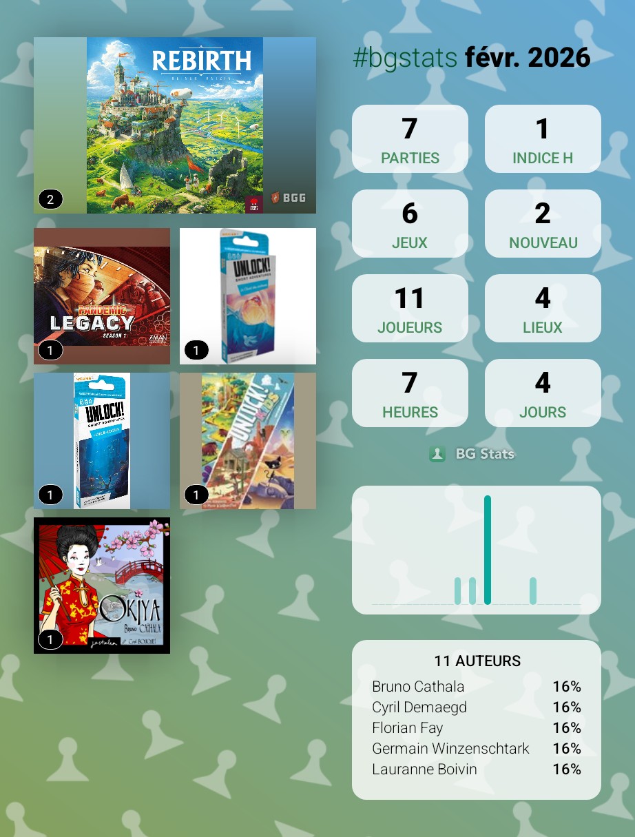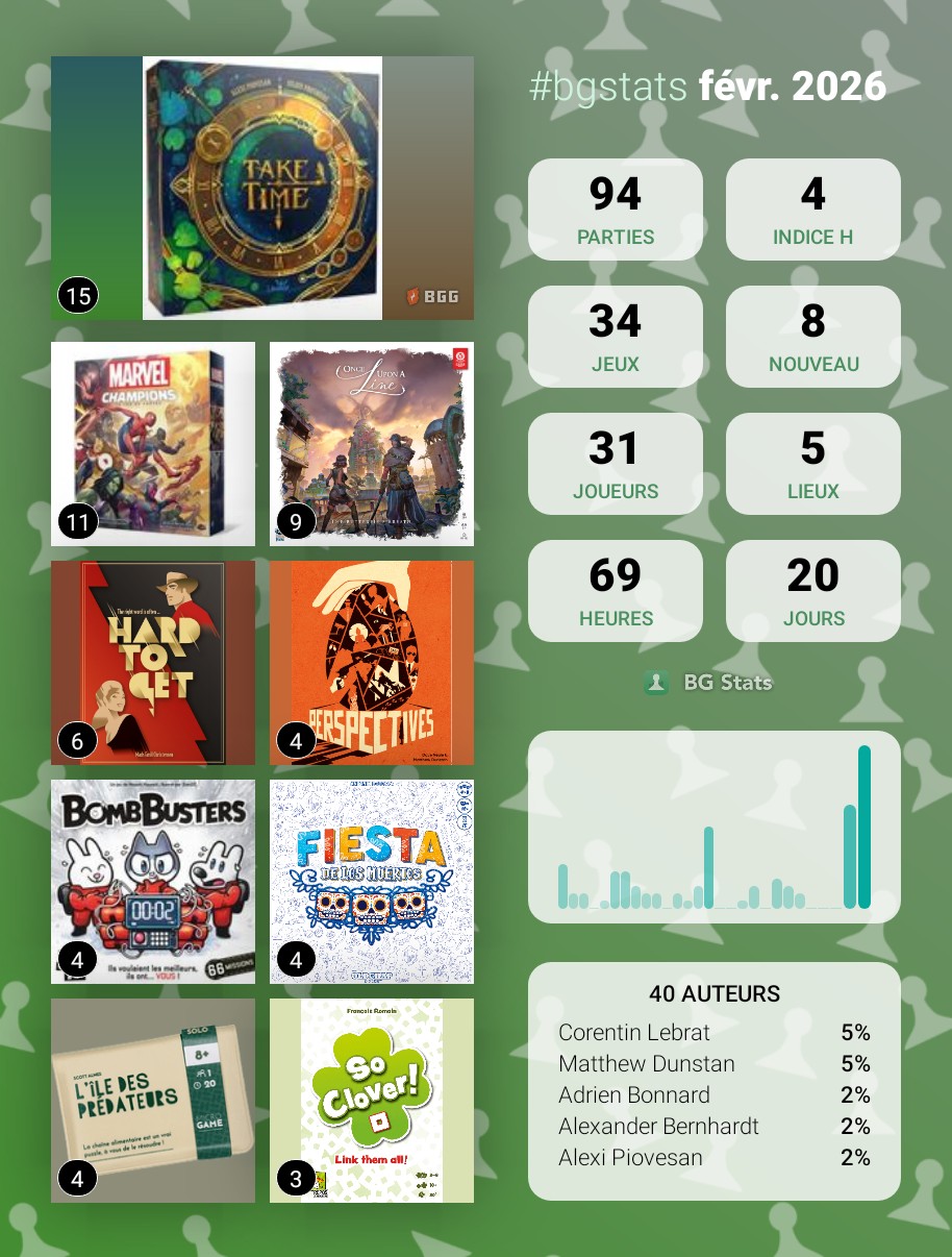 Autre fait marquant, réception de mon Feudum, Darwin’s Journey Oceania et achat de Feya’s Swamp, j’espère jouer à au moins 2 des 3 jeux au mois de mars !