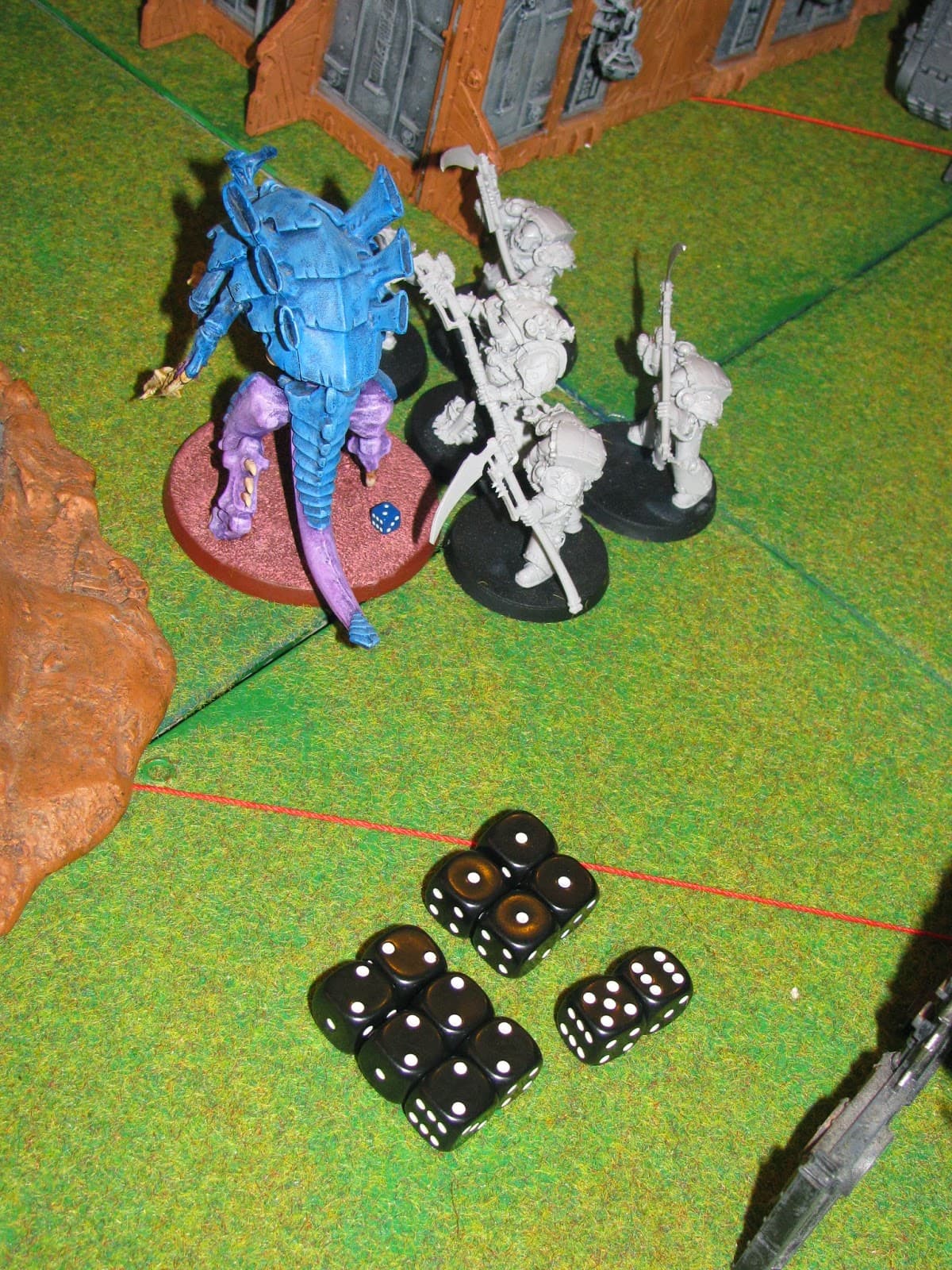 Dans ce tour décisif, s’est déroulé le combat entre Skarbrand l’exilé et le Maître des Essaims, sans doute les deux meilleurs unités de corps-à-corps du jeu. Cependant la chance a permis tout d’abord, au Maître des Essaims de réussir à faire un résultat de 3 à la fois au pouvoir « Bras de Fer », passant la force et l’endurance du Maître de 6 à 9 et au pouvoir « Célérité Warp », passant sont initiative de 6 à 9 et ses attaques de 4 à 7, puis à celui-ci de réussir à avoir la distance de charge de 8 qui lui été nécessaire pour atteindre le Démon exilé de Khorne ! Celui-ci n’a même pas pu riposter devant un tel déploiement de force brute, ayant en plus bénéficié des relances pour toucher que confère Skarbrand lui-même !