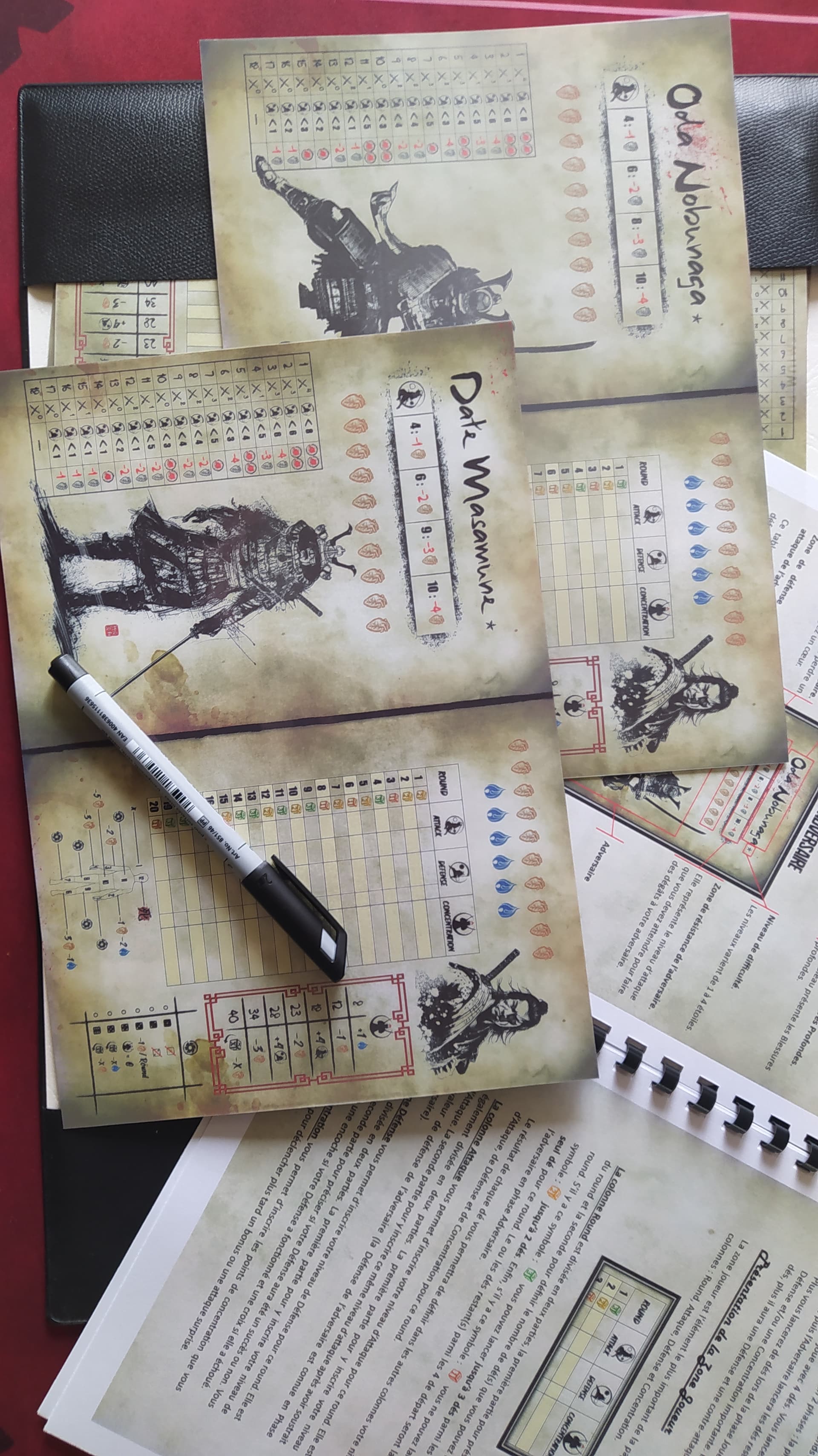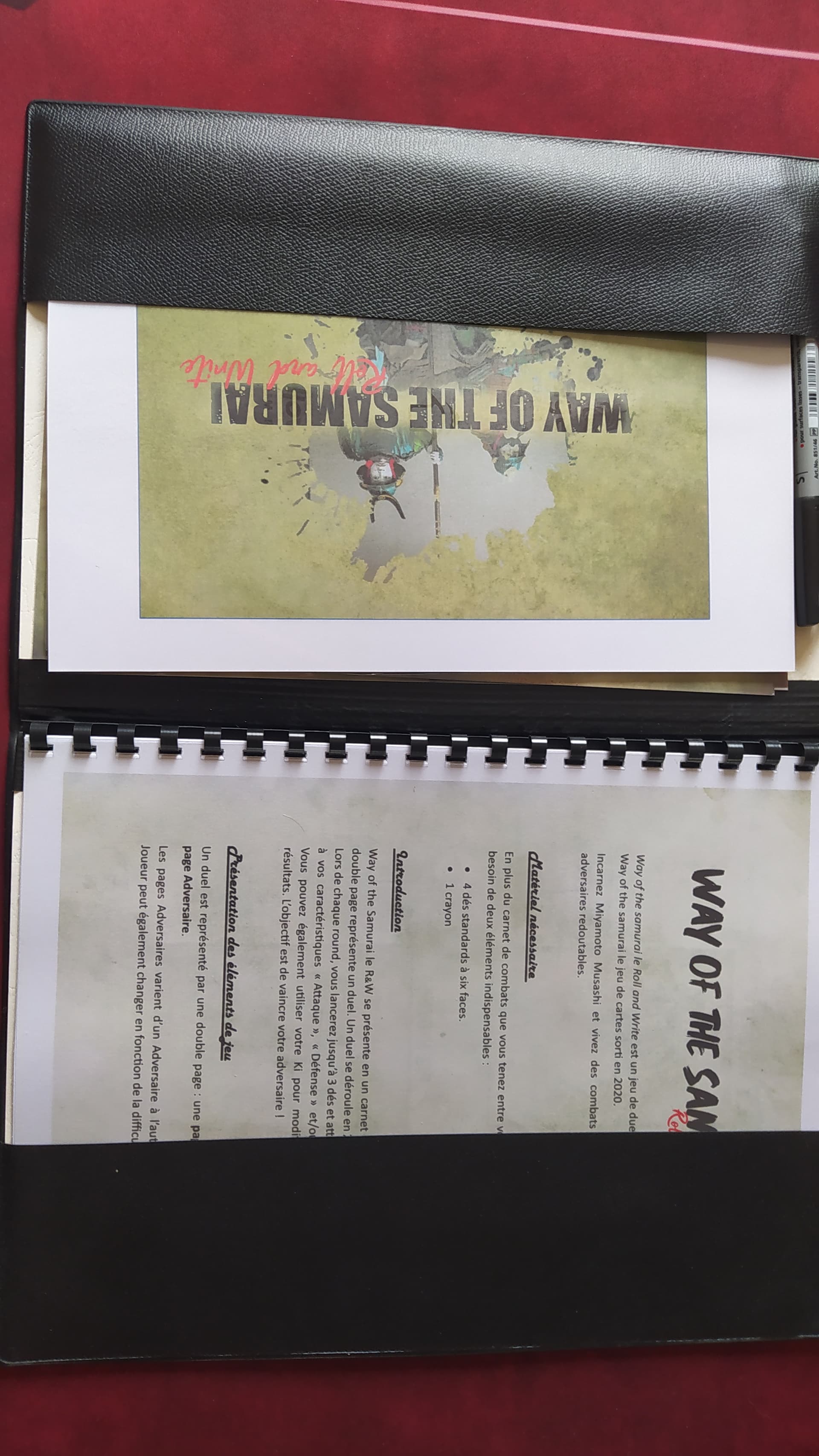 Imprimé en recto verso sur du 250 g/m2, plastifié en 125 microns gloss, stabilo pointe fine en guise de katana, je m’entraîne sévère mais je me fait défoncer ![]()