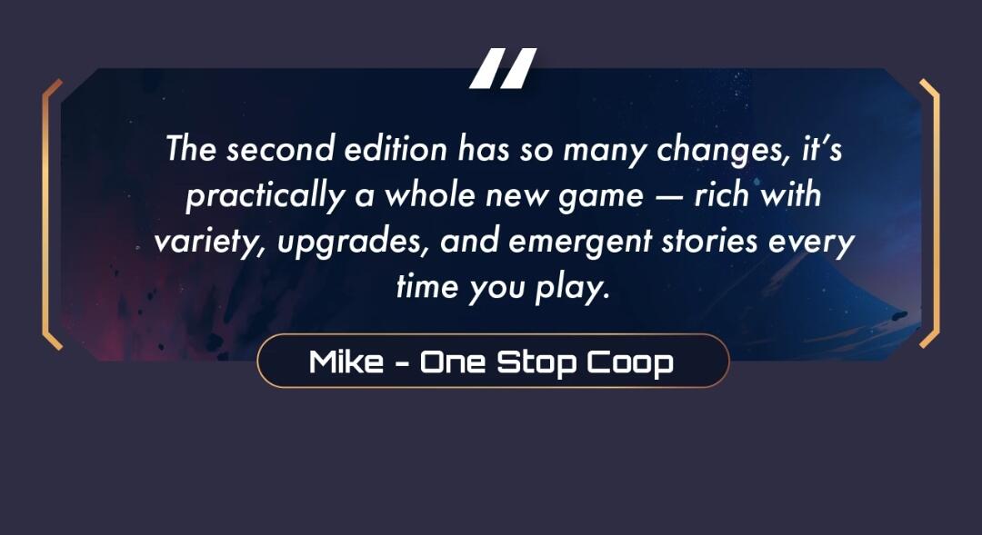 Après avoir lu le livret de règles pour cette V2, j’avoue avoir du mal à comprendre le côté streamline des règles par rapport à la V1. Je n’ai pas l’impression qu’il y ait suffisamment de nouveautés pour justifier cette version quand on a déjà la première. Il y a bien la piste d’ascendance qui ajoute du piment, la réserve de dés et l’élimination d’un vaisseau qui est géré différemment, mais le flow reste quand même fort semblable