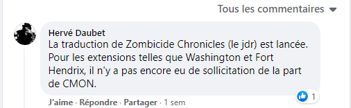 je vois que Zombicide 2nd edition - Fort Hendrix - Boutique Philibert et Zombicide 2nd Edition : Washington Z.C. - Boutique Philibert sont dispo en anglais chez Philibert. je ne me rappelle plus si une VF a été annoncée ?