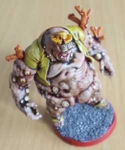 Avec ça je peux me faire des zombies qui ne se ressemblent pas. Et parfois on peut aller sur des petites modifications. Dans l’exemple suivant, je voulais profiter de la peau très granitée de la figurine pour lui donner un côté un peu rouge « homard ». J’étais sur une base 1 (très verte) et j’ai juste appliqué une encre très diluée. J’utilise pour ça les encres de la marque « Action ». 4€ les 5 pots de 30ml, c’est un super ratio quantité/prix. Mais c’est que de l’eau. Le pigment est très peu présent et ça ne permet que de teinté légèrement. La qualité du matériel Action est vraiment basse et il y a pas mal de réactivation (en gros, votre peinture redevient liquide si vous ajoutez une nouvelle couche par dessus).